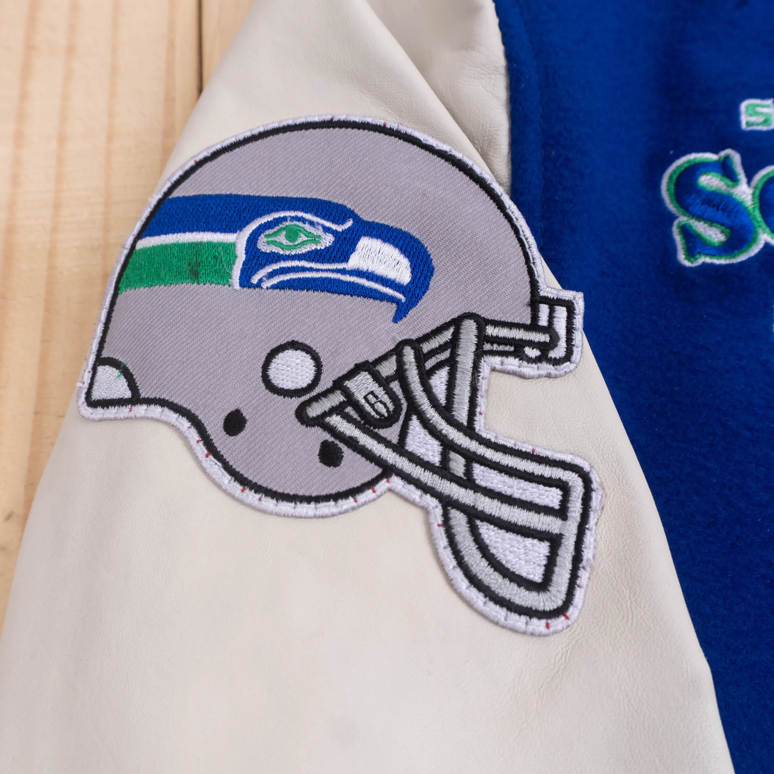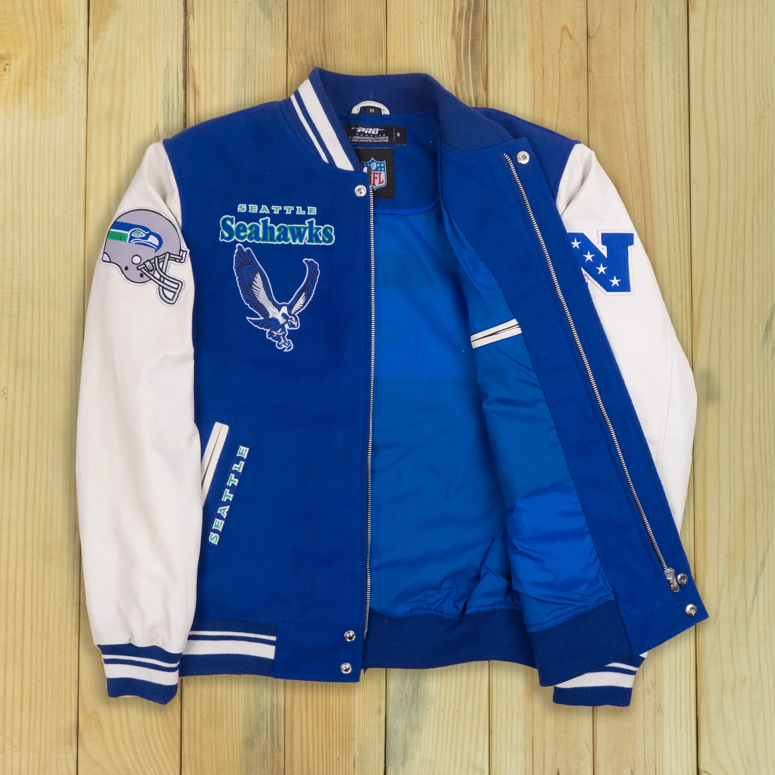 Seattle Seahawks Retro Classic Blue/White Wool & Leather Varsity Jacket
