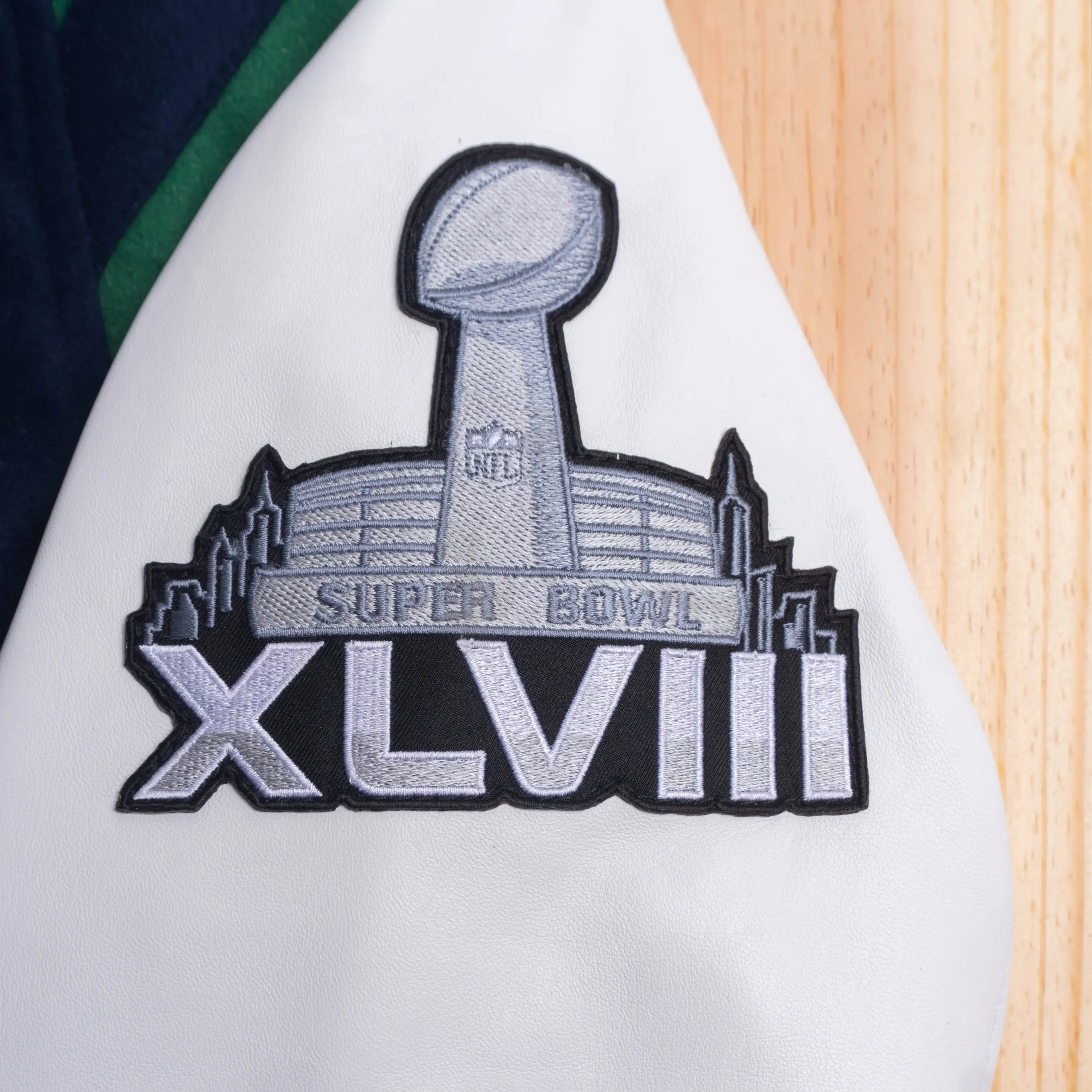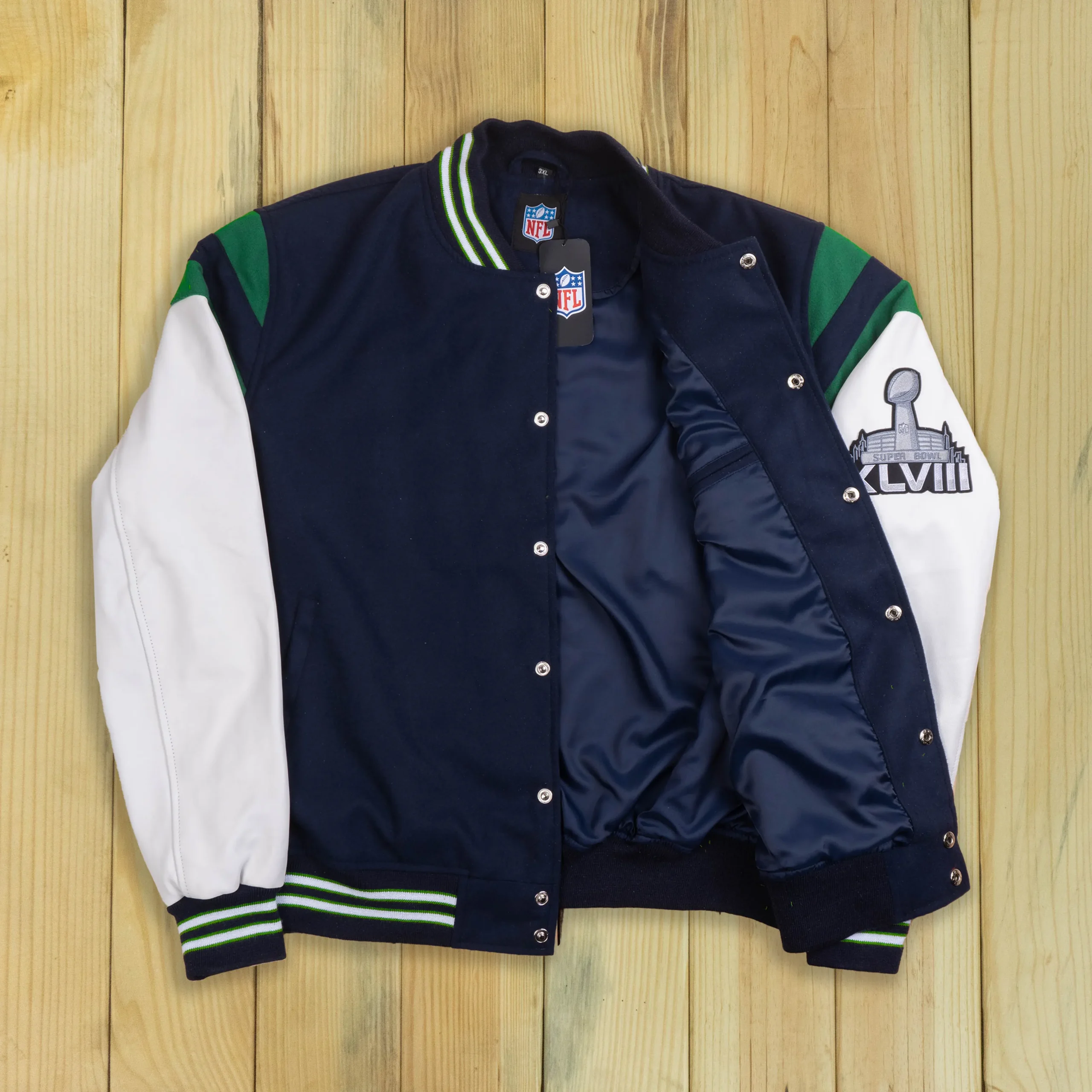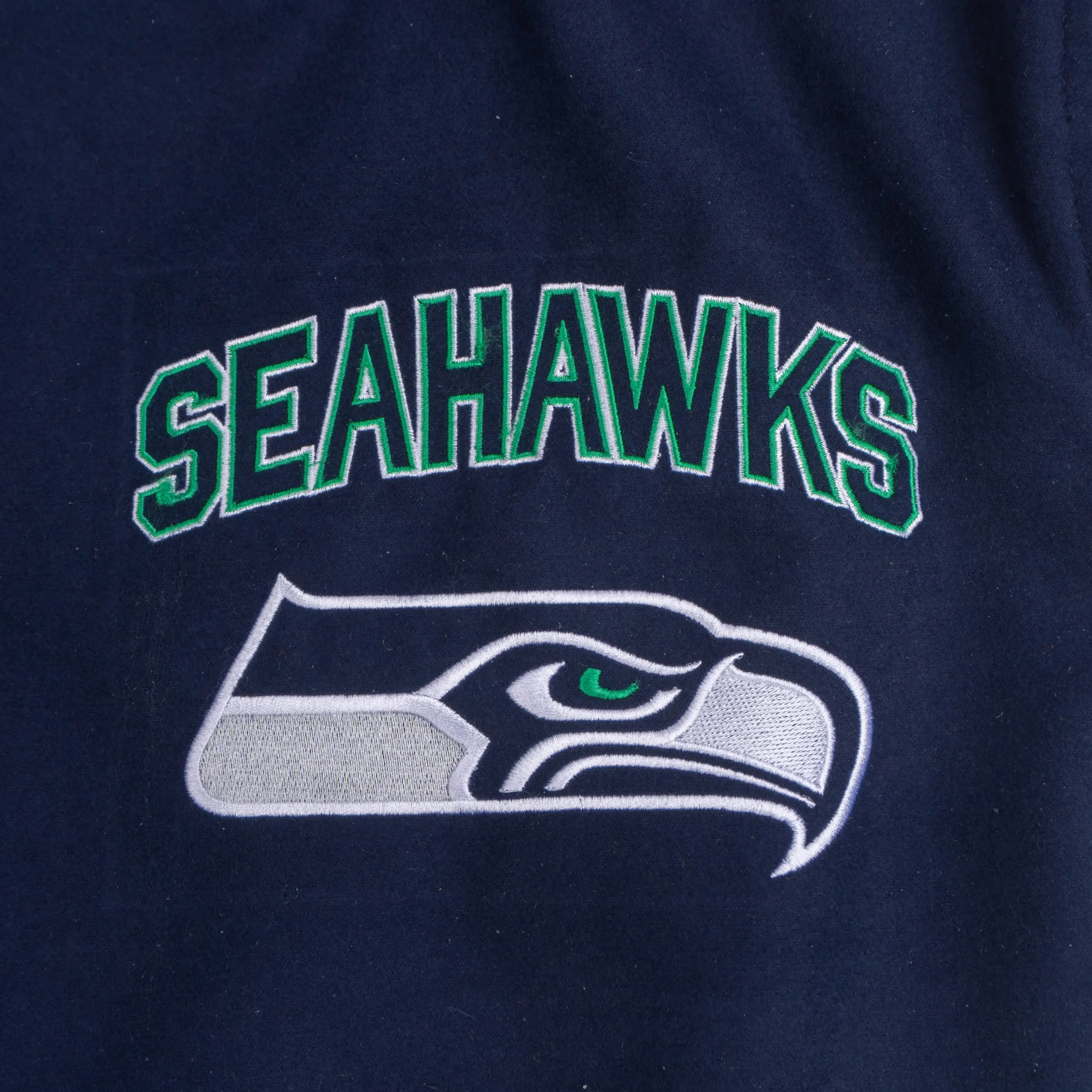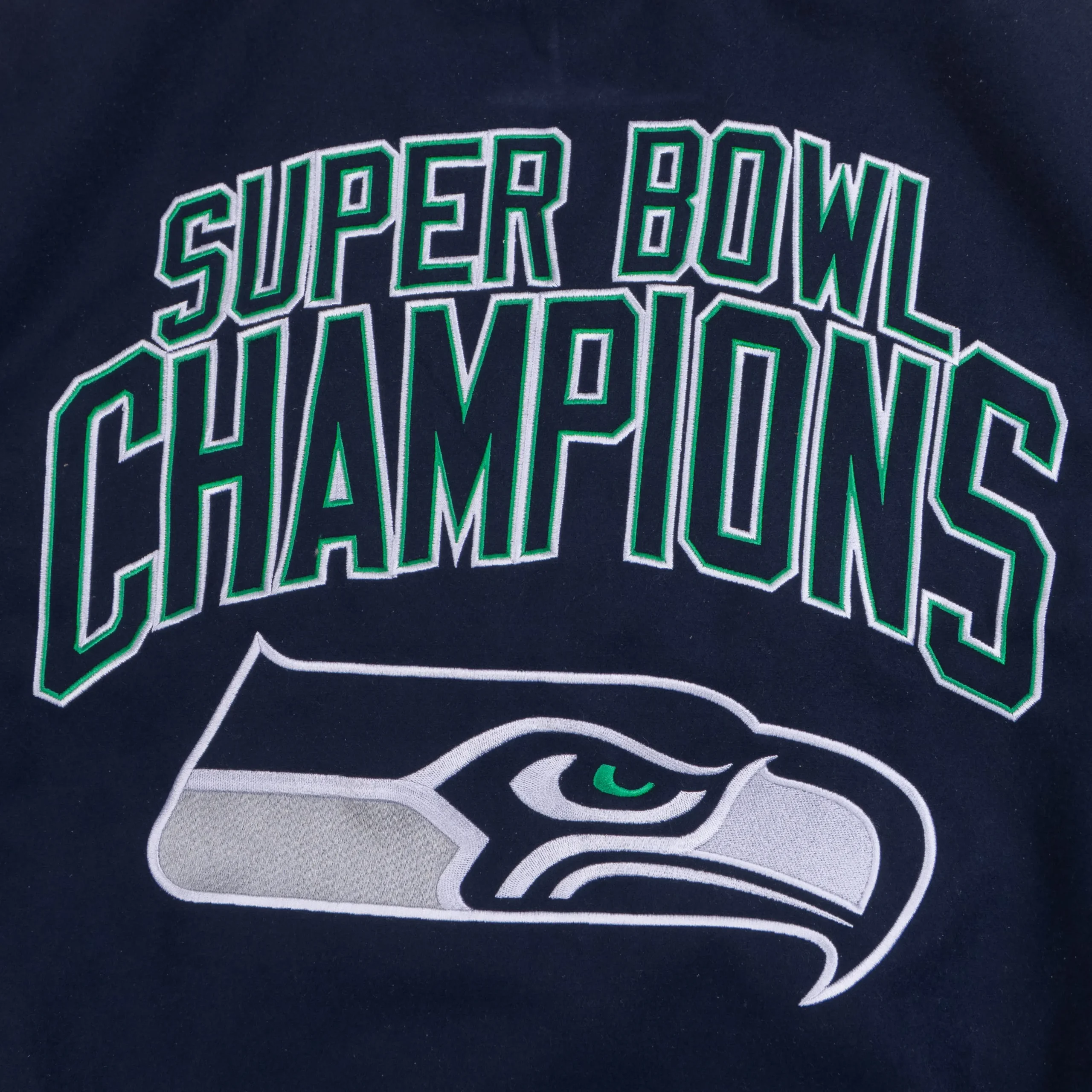 Seattle Seahawks Title Holder Navy & White Satin Varsity Jacket